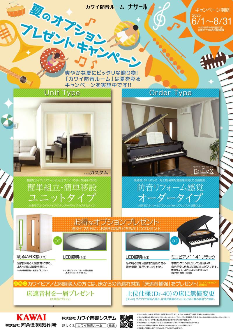 カワイ防音ルーム ナサール オプションプレゼントキャンペーン実施中!お得なこの機会をお見逃しなく!