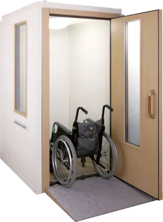 オプションのFIX窓パネル、コネクターボックス、壁吸音板の設置により聴力検査室仕様が可能