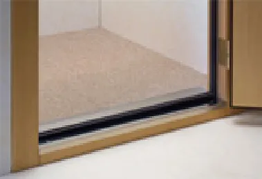 検査室内の床とドア下枠をフラットにすることで、出入り口のつまづき防止対策をしています。0.9畳の車イス対応品は入り口有効巾770mmを確保。車イスの入れる最小の検査室です。また標準品として、入り口スロープと壁プロテクター(車イスによるキズ防止用)が装備されています。