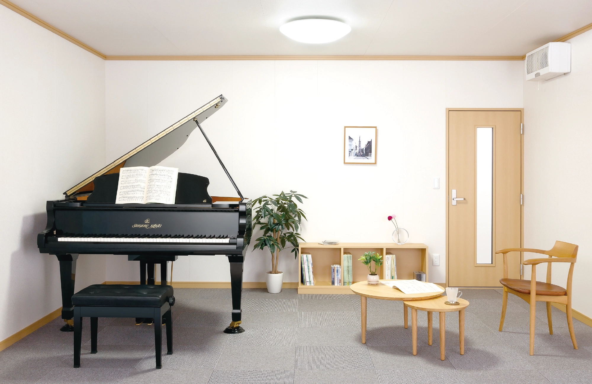 壁と天井には優れた遮音性能を持つ新遮音パネルを用い、床には乾式浮床構造を採用。建物との接する部分を最小限にし、音を伝えにくい構造としています。