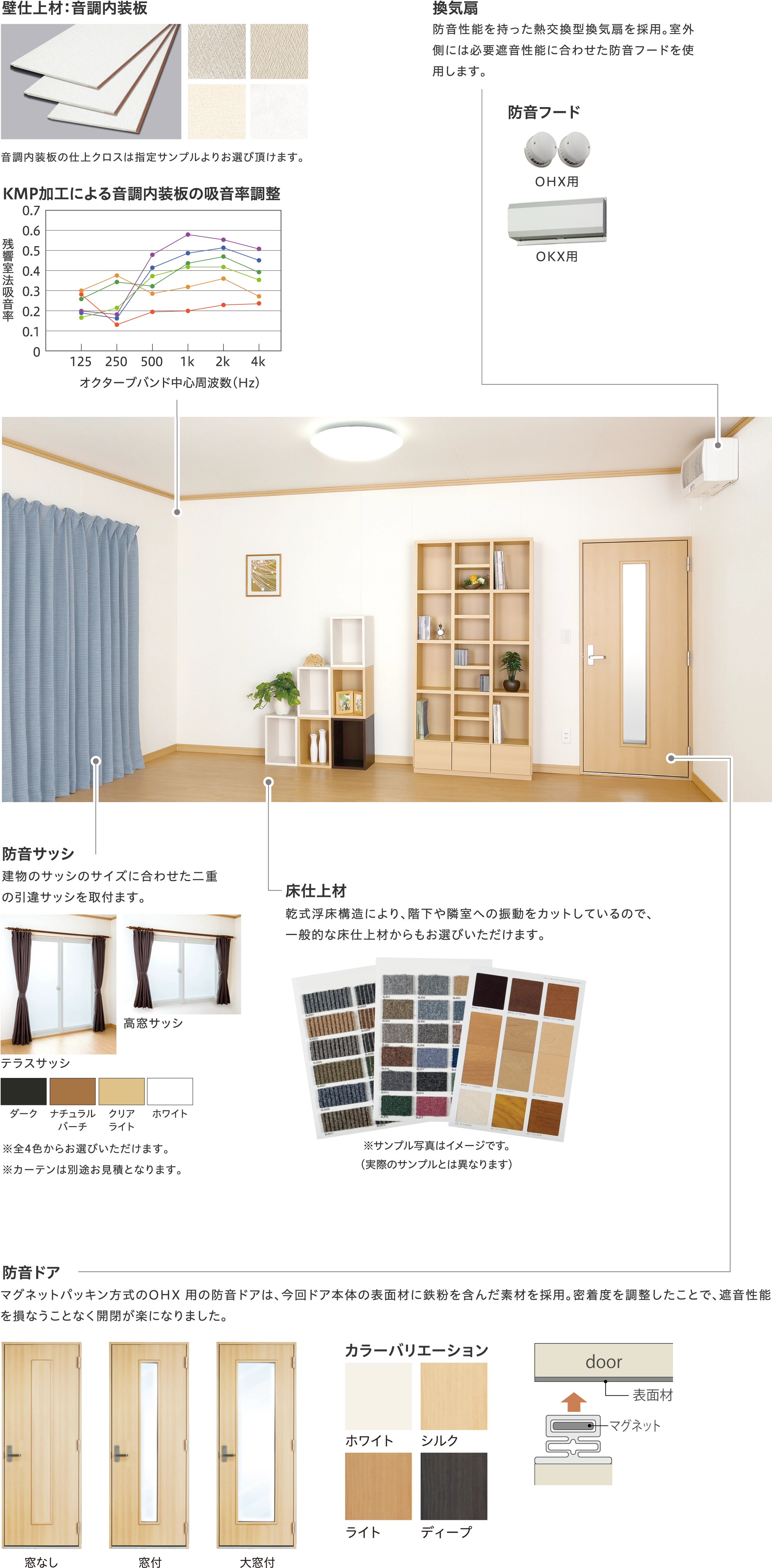 また、オリジナルの音調内装板など、室内に使用する仕上材の組合せにより