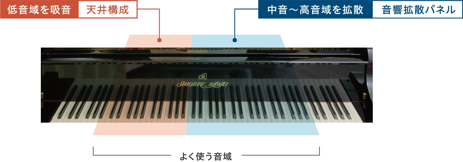 反射・吸音を均一にすることで響きのバランスを調整します。