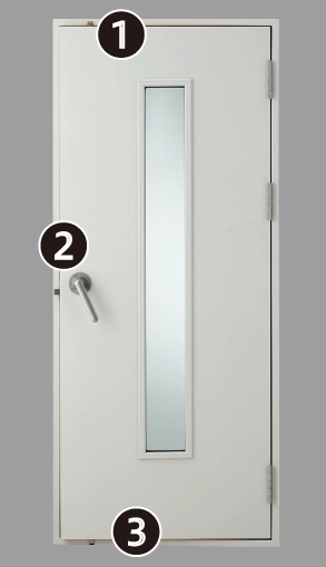 ※OKPX用防音ドアはスタジオ等でも実績のある3点締めのグレモンハンドルドアです。