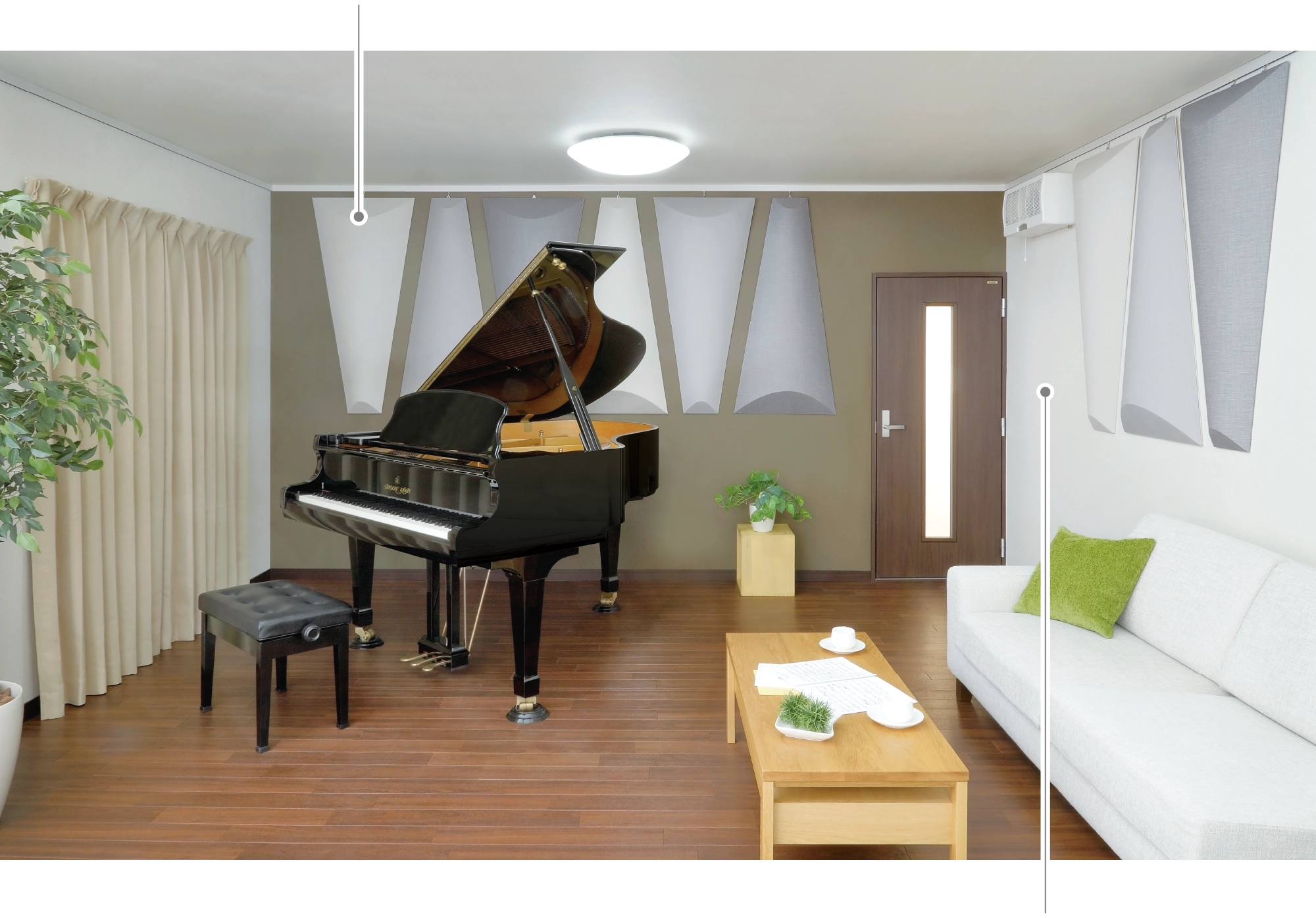- ● 枚数や位置を変更することで、吸音、反射、拡散の調整が可能です。