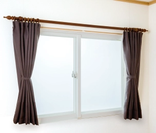 建物のサッシのサイズに合わせた二重の引違サッシを採用しています。